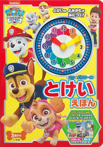 パウ・パトロールと時計をマスター! パウ・パトロールの一日のお話を読みながら、付属のプラスチック時計を動かして、時計の読み方を楽しくマスター!付属の時計は長針と短針が連動しています。長針を動かすと自然と短針も動くので、本格的に時計の動き方を学習できます。さらに、長針は1分ごとにカチっととまる仕組みになっているので、1時間=60分という時間の概念も自然に身につきます。パウ・パトロールが朝起きてから夜眠るまで何をしているのかを楽しく読みながら、時計をカチカチと動かして時計の読み方を覚えていきましょう。時計の読み方を身につけたい未就学のお子様に、特におすすめの一冊です。 【編集担当からのおすすめ情報】 今大人気のパウ・パトロールといっしょに、時計の読み方を楽しく学べる絵本がついに登場です!「チェイスたちは何時に起きたかな?」「みんなは3時のおやつに何を食べるのかな?」など、パウ・パトロールの一日がたっぷり読めるので、キャラクターのこともさらに大好きになれること間違い無し。また、さがしっこ遊びやトラブル解決遊びなど、エンタメ要素も盛りだくさん。遊び本としてもお楽しみいただけます♪