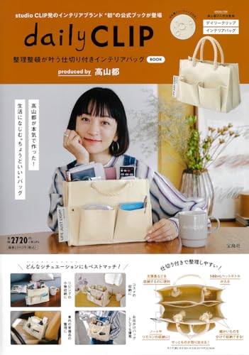 「スタディオクリップ」より新たに誕生したインテリアブランド「デイリークリップ」から“初”となる公式BOOKが登場! \本誌限定の特別アイテム付き! /「整理整頓が叶う仕切り付きインテリアバッグ」モデル・高山都さん完全監修! 生活になじむ“ちょうどいい”バッグです。~~~POINT~~~●マチの広い外ポケット眼鏡やスマートフォンの収納におすすめな外ポケット。マチが広く、サッと出し入れが可能です。●長財布が縦におさまる長財布が縦におさまるサイズ。インテリアバッグとしてはもちろん、お出かけバッグとしても優秀です。●500mLペットボトルがおさまる! 500mLペットボトルが自立するサイズのポケット。リモコンなど、立てておきたいアイテムの収納に便利です。●細かいものを収納できる内ポケット仕切りには細かいものの収納に便利な内ポケットが2つ。ペンやお薬などの収納におすすめです。●持ち手は収納可能! インテリアボックスとして使用する際は、持ち手を内側にしまうとスタイリッシュに! 小さなこだわりポイントです。●水を弾くコーティング付き水回りやお弁当バッグとして使用する際も安心な水を弾くコーティング付き。汚れもつきにくいので安心です。~~~~~~~~~~~~~~特別アイテムとBOOK(8ページ)のセットを、2,720円+税のスペシャルプライスでお届け。この機会をお見逃しなく。サイズ(約):タテ18×ヨコ25.5×マチ12.5cm