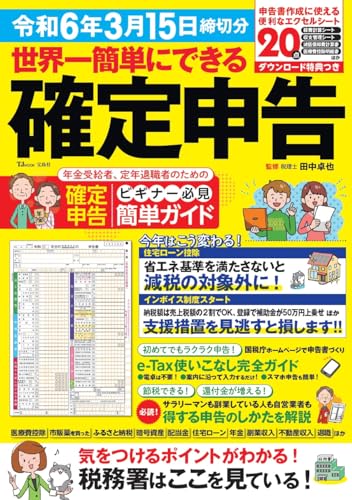 確定申告は個人事業主だけのもので、サラリーマンには無縁だと思っていませんか? 実はサラリーマンでも、ある条件に当てはまる人は確定申告しなければなりません。医療費控除やふるさと納税、住宅ローン、株式や投資、近年増えている副業など様々。本誌は、初めての人でもサクサクと確定申告ができるように、控除対象者をわかりやすく解説するのに加え、実際の記入例も示します。さらに、初めての人でもベテランの人でも楽に書類作成ができるように、エクセルシートのダウンロード特典つき。陥りやすいミスについても丁寧に解説します。