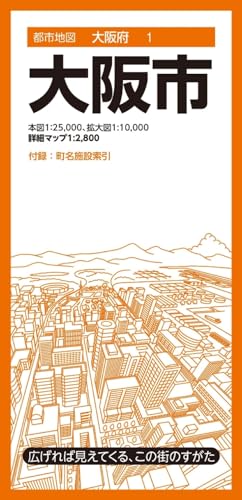 『都市地図』は、広げて見るシートタイプの都市詳細地図です。全国約1000市町村をラインナップしています。日常利用に幅広く応える、お役立ち情報を満載しています。●商品概要本図1:25,000、拡大図1:10,000、詳細マップ1:2,800大阪市の全域を1:25,000の縮尺で掲載。さらに中心部のエリアは1:10,000の縮尺の拡大図で掲載しています。また、キタ・ミナミのエリアを1:2,800の詳細マップで収録しています。付録にて町名及び市役所や官公署ほか生活に便利な施設の索引を掲載しています。●サイズ商品のサイズ109.1×78.8×0.01cmパッケージのサイズ10.3×21.3×1.45cm●シリーズ特長・広げれば見えてくる、街のすがた1枚の大判紙で市町村の姿が一目でわかり、日々の暮らしに役立つ情報や街の特徴を表現した市町村案内地図です。・街の基本情報を忠実に表現道路や鉄道、住所、公共施設、商業施設、自然地形など地図としての基本情報を忠実に表現。コンビニやファストフード、ガソリンスタンドなどはロゴマークを記号化することで直観的に識別できるようにしています。・町名施設索引付き町域で色分けされた地図と町名索引で、場所の検索も容易です。・様々な利用シーン営業やエリアマーケティング、不動産業務、分布図作成、地域の防犯・防災マップ作成、入学祝いや引越し祝いの贈答品に