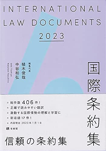 1950年創刊以来の編集実績を誇る信頼の条約集。翻訳文は正確かつ読みやすく,国際法を理解するうえで必須の条約・国際文書を厳選して収録。2023年版では,ウクライナ関係文書(国連総会緊急特別会合決議11/1~11/5等),GGE報告書,ビジネスと人権に関する指導原則,経済安全保障推進法等の17件を新たに追加。初学者から研究者まで必携の1冊。