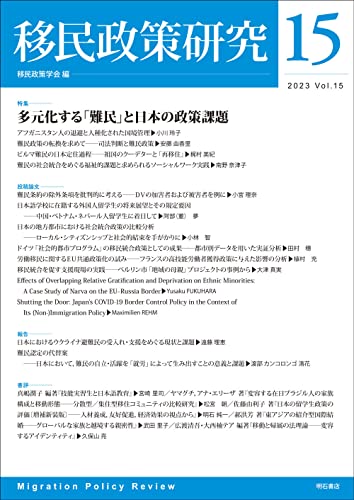 「移民政策学会」学会誌。第15号の特集は「多元化する『難民』と日本の政策課題」。在日ビルマ人の日本国内での再定住、難民支援におけるソーシャルワーク、アフガニスタン難民の事例と国境管理の外部化、難民認定手続きの法制度上の諸問題に関する論考を収載。