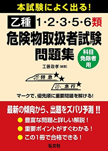 ローマ字:honshiken ni yoku deru otsushu ichi ni san go rokurui kikenbutsu toriatsukaisha shiken mondaishuu : kamoku menjoshayou