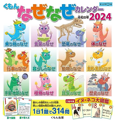 1日1題、毎日が知識の宝庫。暮らし、動物、植物、昆虫、恐竜、乗り物、体、地球・宇宙、歴史、発明・発見、行事、言葉の楽しい「なぜ」が満載。2024年版の日曜特集は、「イヌ・ネコ大図鑑 」です。子どもたちに一番身近な動物の犬と猫の姿と種別の名前、原産国を特集します。ペットとして飼っているワンちゃん、ネコちゃんが見つけられたり、お散歩しているワンちゃん、ネコちゃんの名前がわかったり。知識も増えて楽しい2024年の日曜特集です。
