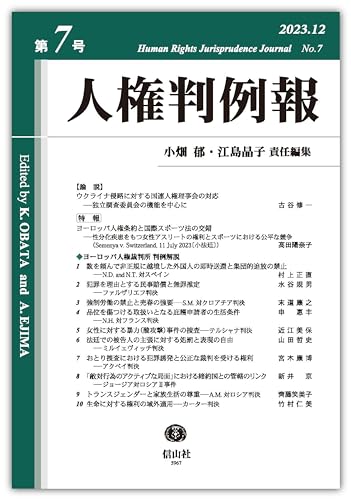 人権のグローバルなネットワークの構築へ、益々充実の〔第7号〕―〔ヨーロッパ人権裁判所の判例 判例解説〕10本に加え、〔論説〕(ウクライナ侵略に対する国連人権理事会の対応/古谷修一)、〔速報〕(ヨーロッパ人権条約と国際スポーツ法の交錯/髙田陽奈子)を掲載。