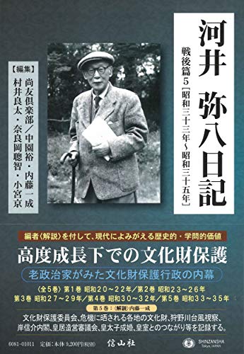 ◆第5巻・・・高度成長下の文化財保護 ― 文化財保護委員会、危機に晒される各地の文化財、狩野川台風視察、岸信介内閣、皇居造営審議会、皇太子成婚、皇室とのつながり等を記録する。巻末には、内藤一成氏(宮内庁書陵部主任研究官)による貴重な〈解説〉の他、全巻索引(人名索引・事項索引)を掲載。