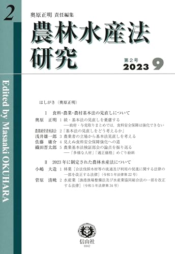 わが国農林水産業の健全な発展と国際競争力のある成長産業を目指し、積極的に発信。第2号は、第1号に続き、食料・農業・農村基本法の見直しに関する4論攷(奥原、浅井、佐藤、織田)に加え、農業経営者9名との座談会「基本法見直しをどう考えるか」で現実に迫る。2023年制定の農林水産法関連の2本(小嶋、菅原)を掲載。