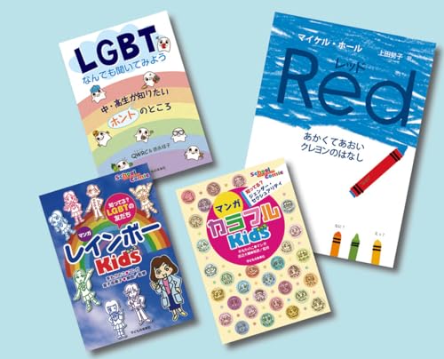 クレヨンが主人公の多様性を理解する絵本、中高生から出た疑問にQ&Aで答える本、LGBTの友だちを理解できるマンガの4冊セット。知識先行の学習ではなく、性の多様性や「らしさ」について考えるための入門シリーズです。