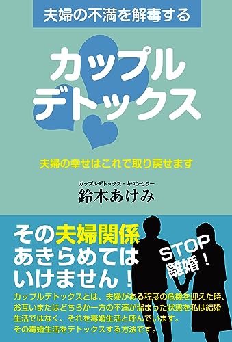 カップルデトックスとは夫婦がある程度の危機を迎えた時、お互いまたはどちらか一方の不満が溜まった状態を私は結婚生活ではなく、それを毒婚生活と呼んでいます。カップルデトックスとはその毒婚生活をデトックスする方法です。いわゆる夫婦関係修復のことです。私のところに寄せられる毒婚生活相談は減少していません。日々カップルデトックスに向き合っています。ご夫婦揃ってのカップルデトックスはワタクシと3人で夫婦間に起きている問題に対し解決策を見つけるカウンセリングです。臨床心理カウンセラーではありませんので、心理に働きかけるカウンセリングではありません。ご夫婦揃ってのカップルデトックスを受けられた方で離婚に向かった方はおられません。この本には夫婦危機から脱出し、まさにカップルデトックスに成功した方の事例やそのために必要な基礎知識を沢山載せました。特別難しいことはありません。どなたにも応用できることです。夫婦の危機から脱出したい方は是非この本を参考になさって下さい。