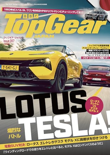 Top Gear JAPAN トップギア・ジャパン057は、英国車特集だ。ロータス初の電気自動車SUV、エレトレとテスラ モデル Xを戦わせる。そして、ロールス・ロイスからもEVのスペクター、アストンマーティン DB12、ベントレー バトゥール マリナーと、豪華英国車が続く。フーニガンとスバル モータースポーツがワンオフで作ったスバル GL ワゴンを、ドリフトの名手、トラビス パストラーナが操る。1983年型GL ワゴンは地味なファミリーカーだったが、862hpの派手なドリフトマシンに生まれ変わった。映画「グランツーリスモ」、タミヤのラジコンカー「ワイルドワン」を実車にした記事もある。初心者ガイドはロータス。