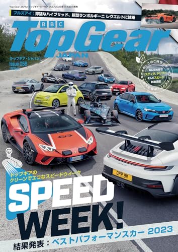 Top Gear JAPAN トップギア・ジャパン058は、恒例のスピードウイーク。15台のクルマとジャーナリスト、カメラマン、ビデオカメラマンなど16名のスタッフで、作り上げた圧巻の特集だ。今回のスピードウイークは、いつもと視点を変えて、脱炭素を試みている。スーパーカーやスポーツカーを楽しみながらも、可能な限り二酸化炭素排出量を削減するにはどうしたら良いのか、一つの提案を行ったつもりである。舞台は、環境先進国であるスウェーデンのゴッドランド島にあるゴッドランドリングだ。ランボルギーニ ウラカン ステラート、ロータス エミーラ i4、ポルシェ 911 GT3 RSのほか、トヨタ GR86やホンダ シビック タイプ Rの日本勢も参戦している。最優秀車は何になるのだろうか。試乗はランボルギーニ レヴエルト、アウディ Q8 e-tronなど。初心者ガイドはアストンマーティン。